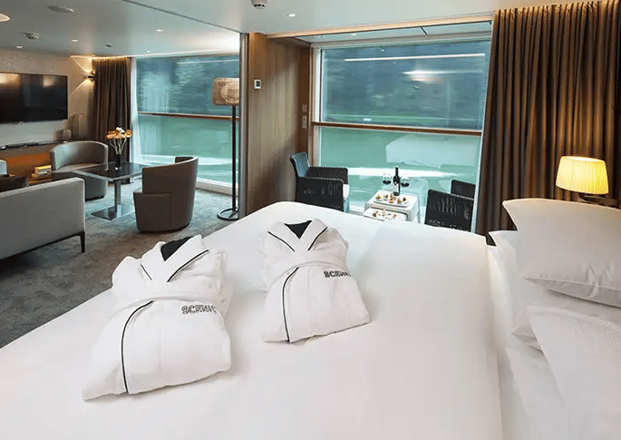Their Scenic Sapphire and Scenic Diamond, sailing in France’s Rhône and Bordeaux regions, recently received significant updates, blending soft contemporary tones with larger windows and more natural light.